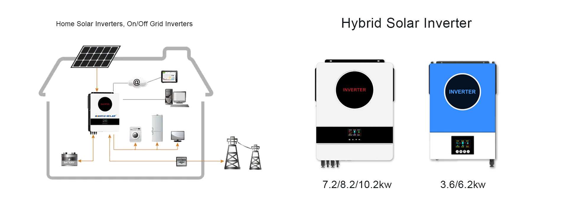 On/Off-Grid Dc-Ac Wall Inverter 3.6Kw 6.2kw Hybrid Solar Inverter 48V 24V All In One Mpp Hybrid Solar Inverter